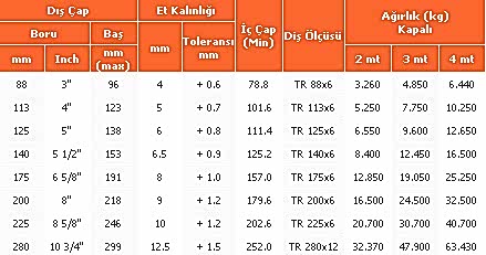 3. Trapez dişli borulardaki diş koruyucuları, boruların kullanılacagı zamana kadar çıkarılmamalıdır.