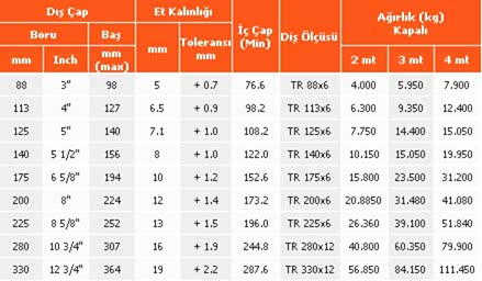3. Sınıf borular, derin kuyuların 0 m – 100 m derinliklerinde kullanılır.
