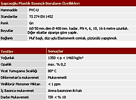 PVC-U Basınçlı Boruları;