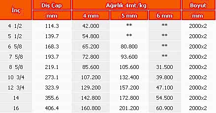 Sac derin kuyu boruları DIN 1700 normlarına uygun St 37 malzemeden imal edilmektedir.